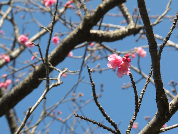 沖縄の桜はヒカンザクラがメイン。ショッキングピンクの桜です。